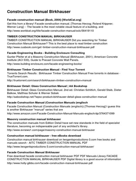 Reading Online BIRKHAUSER CONCRETE CONSTRUCTION MANUAL Epub Library Genesis